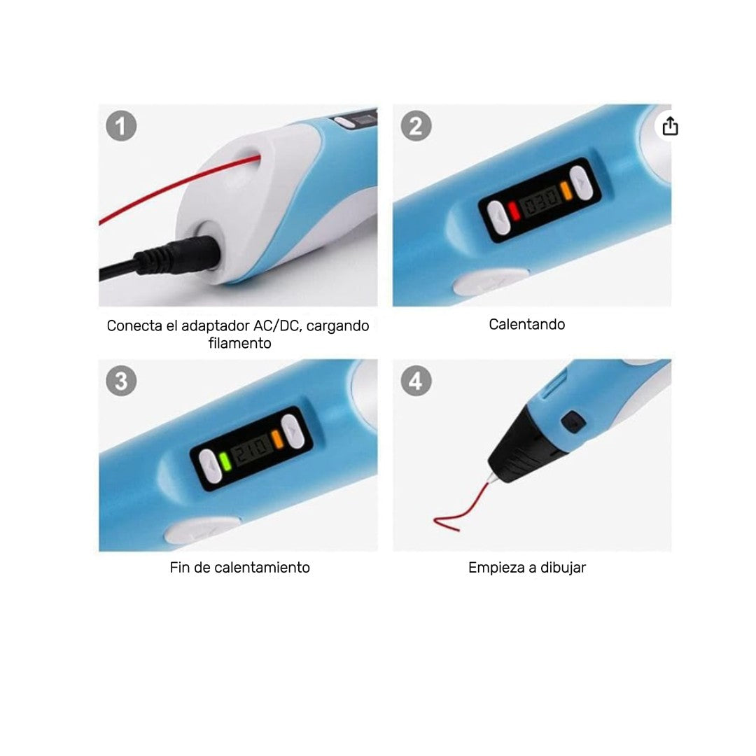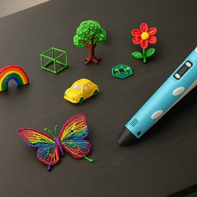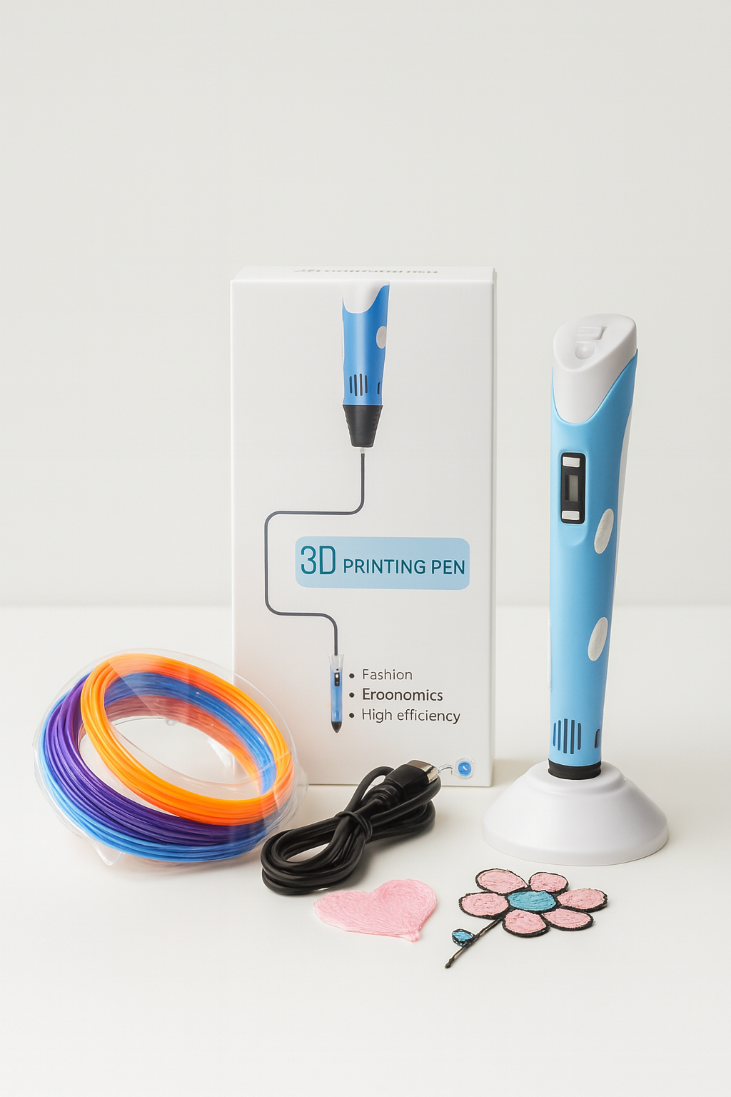 Producto tecnológico y creativo que permite dibujar objetos tridimensionales mediante la extrusión de filamento plástico fundido (como PLA o ABS), similar al material usado en las impresoras 3D.