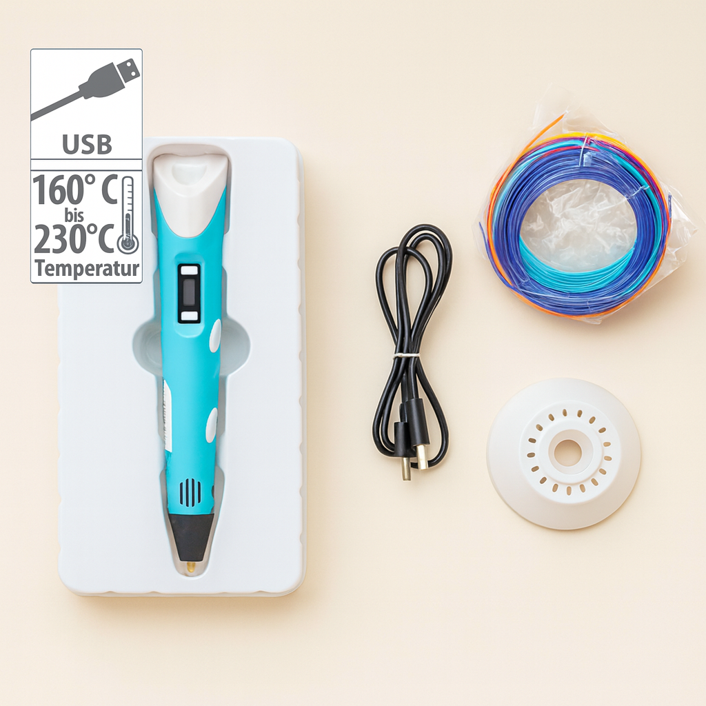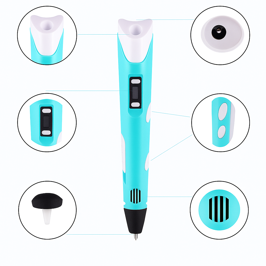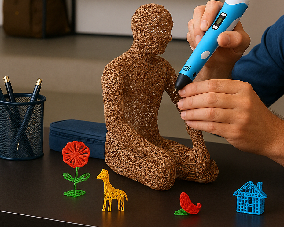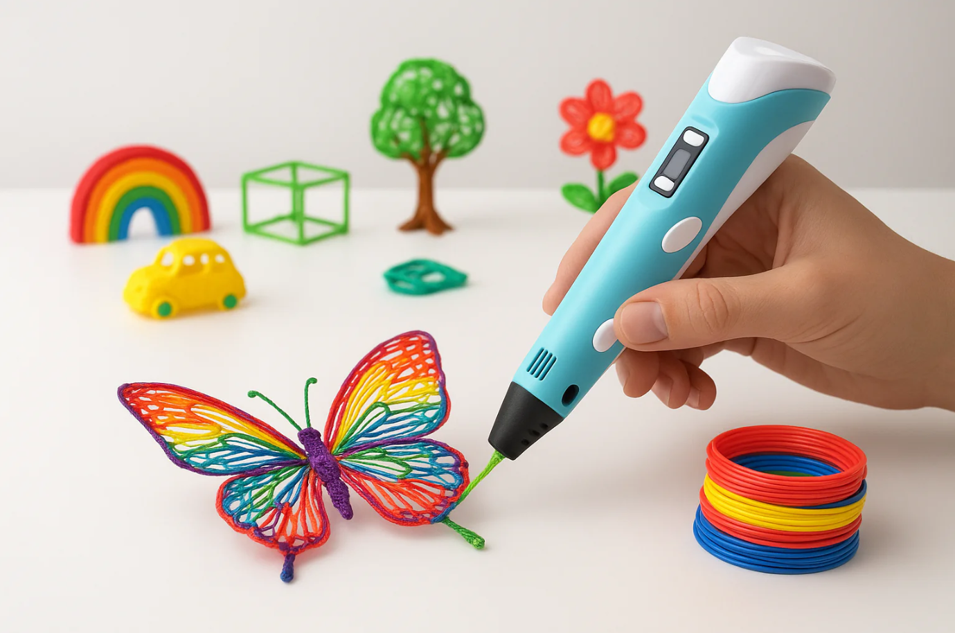 Producto tecnológico y creativo que permite dibujar objetos tridimensionales mediante la extrusión de filamento plástico fundido (como PLA o ABS), similar al material usado en las impresoras 3D.